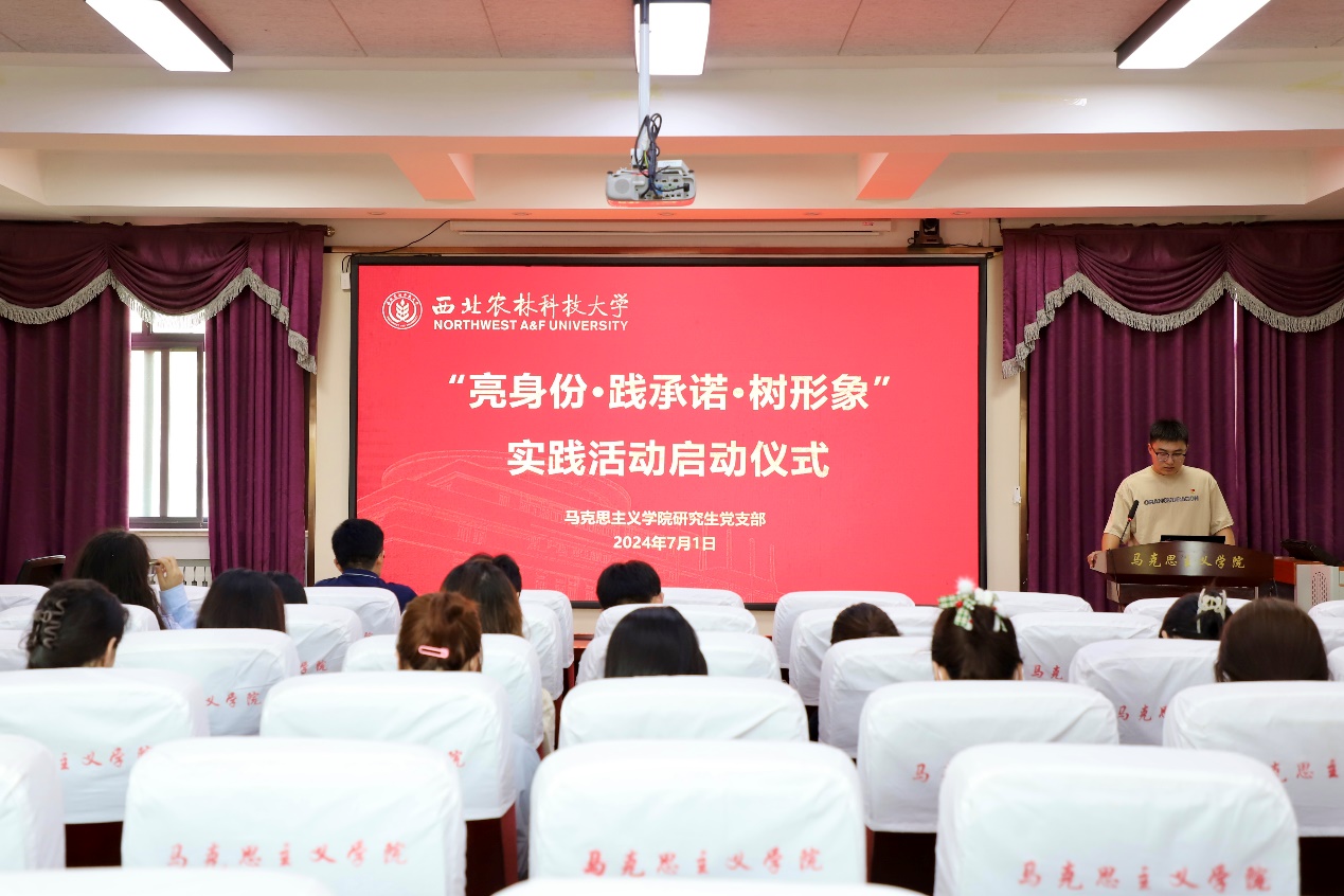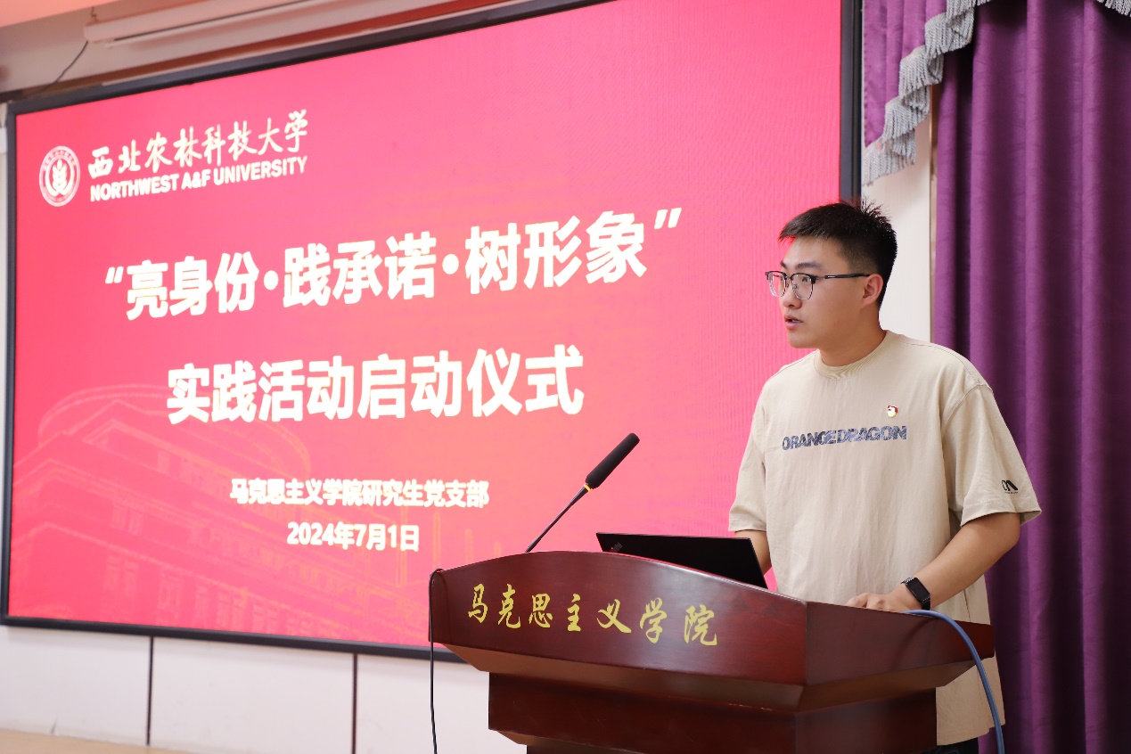 为深入学习贯彻习近平新时代中国特色社会主义思想和党的二十大精神,进一步推动党纪学习教育走深走实,研究生党支部于7月1日在学院408会议室举行“亮身份·践承诺·树形象”主题实践活动启动仪式。支部宣传委员丁文博主持,院党委副书记兼副院长王家武应邀出席并讲话,在校研究生党员、入党积极分子参加了活动。