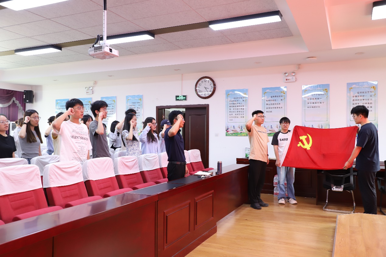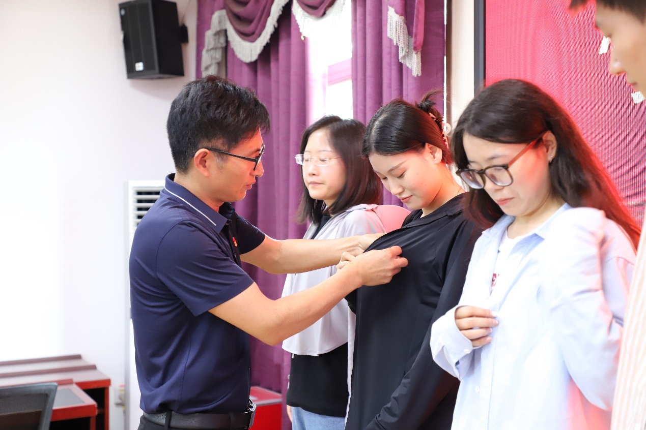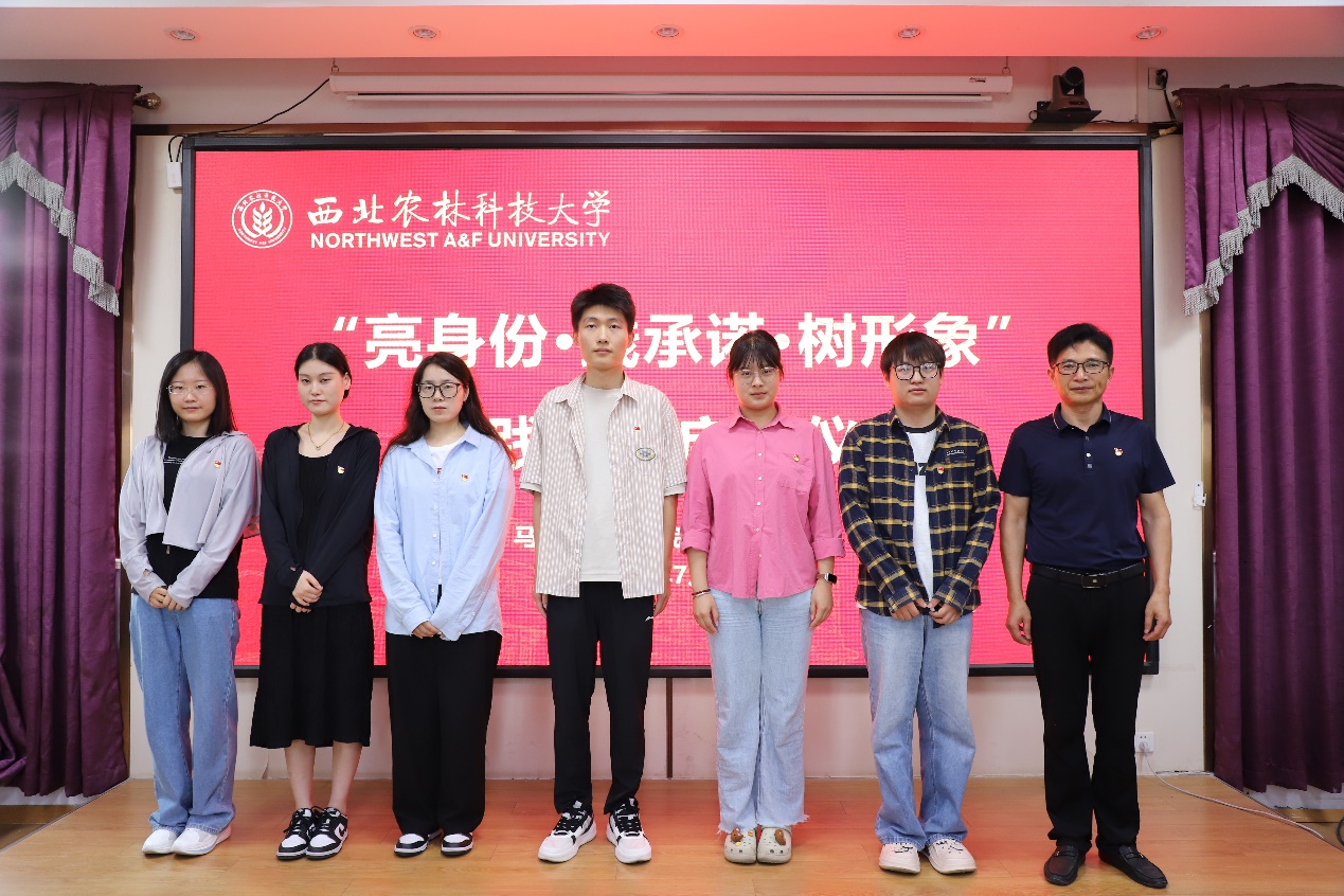 院党委副书记王家武为七名新入党的研究生逐一佩戴党徽,代表学院党委为活动致辞。他强调,党员的身份不仅是一种荣誉,更是一种责任。全体党员要时刻牢记自己的这个政治身份,做到言行一致、以身作则,用实际行动影响和带动周围的人。他指出,全体党员要勇于亮出自己的党员身份,敢于接受群众的监督,以更高的标准要求自己。“践承诺”强调的是要有行动,不能空谈,全体党员要时刻牢记入党誓词,用实际行动向党和人民兑现承诺。无论是在学习、工作还是生活中,都要言行一致、表里如一,用实际行动为党的事业添砖加瓦。党员的形象不仅关乎个人荣誉,更关乎党的形象。全体党员要时刻注意自己的言行举止,做到言行文明、举止得体,树立良好的个人形象。全体党员要树立正确的世界观、人生观和价值观,做到公私分明、廉洁自律,要积极参加志愿服务和公益活动,用自己的实际行动为社会做出积极的贡献。