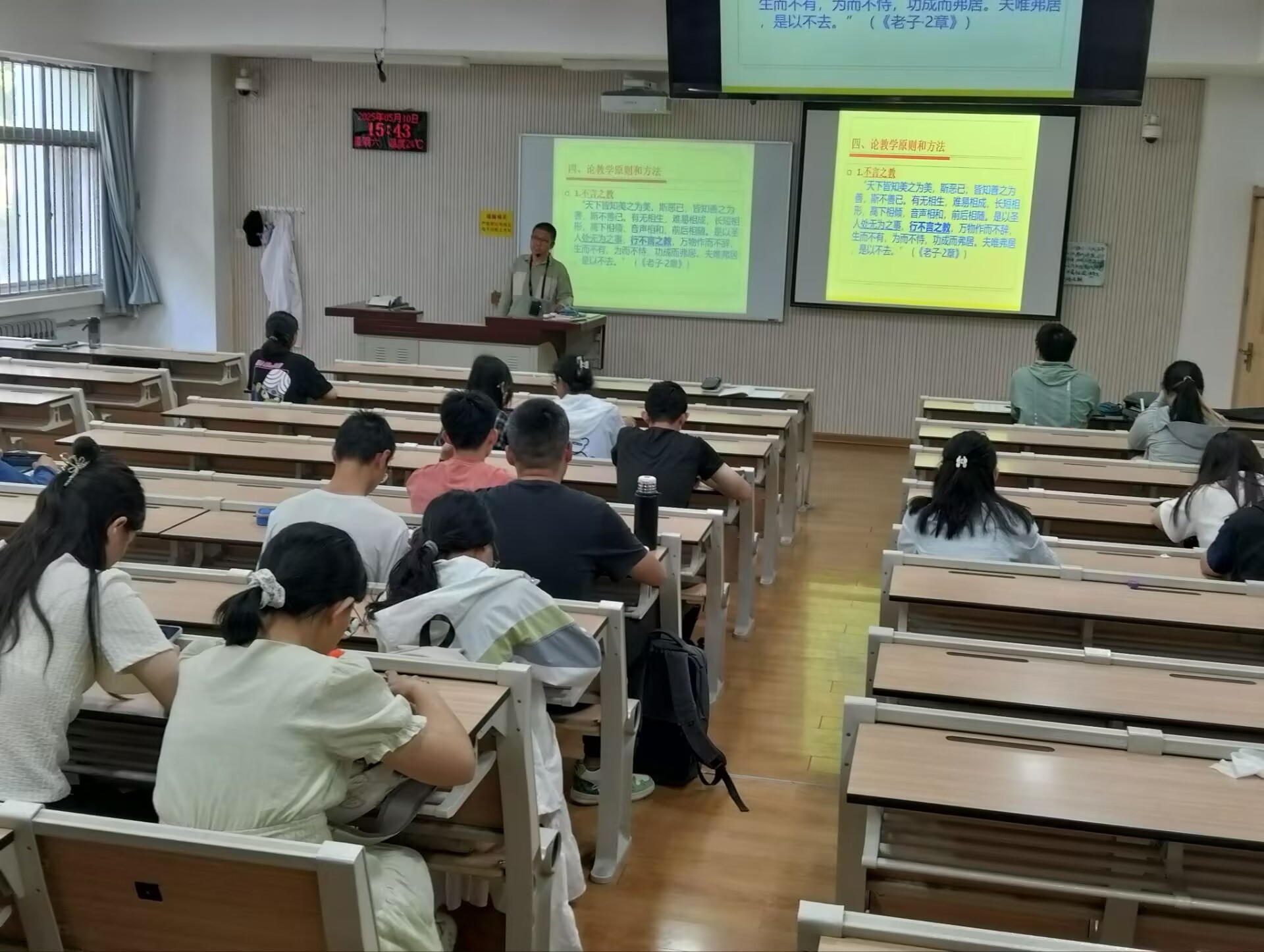 为深入学习习近平文化思想,传承中华优秀传统文化,讲好中国故事,5月10日下午,学校传统文化学社在北校区八号教学楼举办“寻道.问道.践道﹣道家智慧的当代启示”专题讲座,近50名西农学子聆听了讲座。