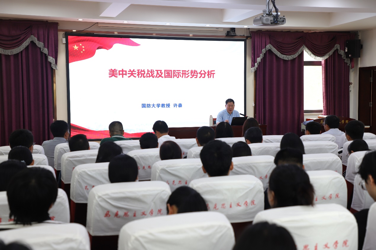 5月14日,新葡的京集团官网特邀国防大学教授许森做客凤岗讲堂,围绕“美中关税战及国际形势分析”作专题报告。许森教授结合当前国际局势,深入剖析了美国发动全球关税战的动因、中美贸易失衡的深层逻辑及中国的战略应对策略。会议由学院党委书记闫德忠主持,新葡的京集团官网全体师生参加。