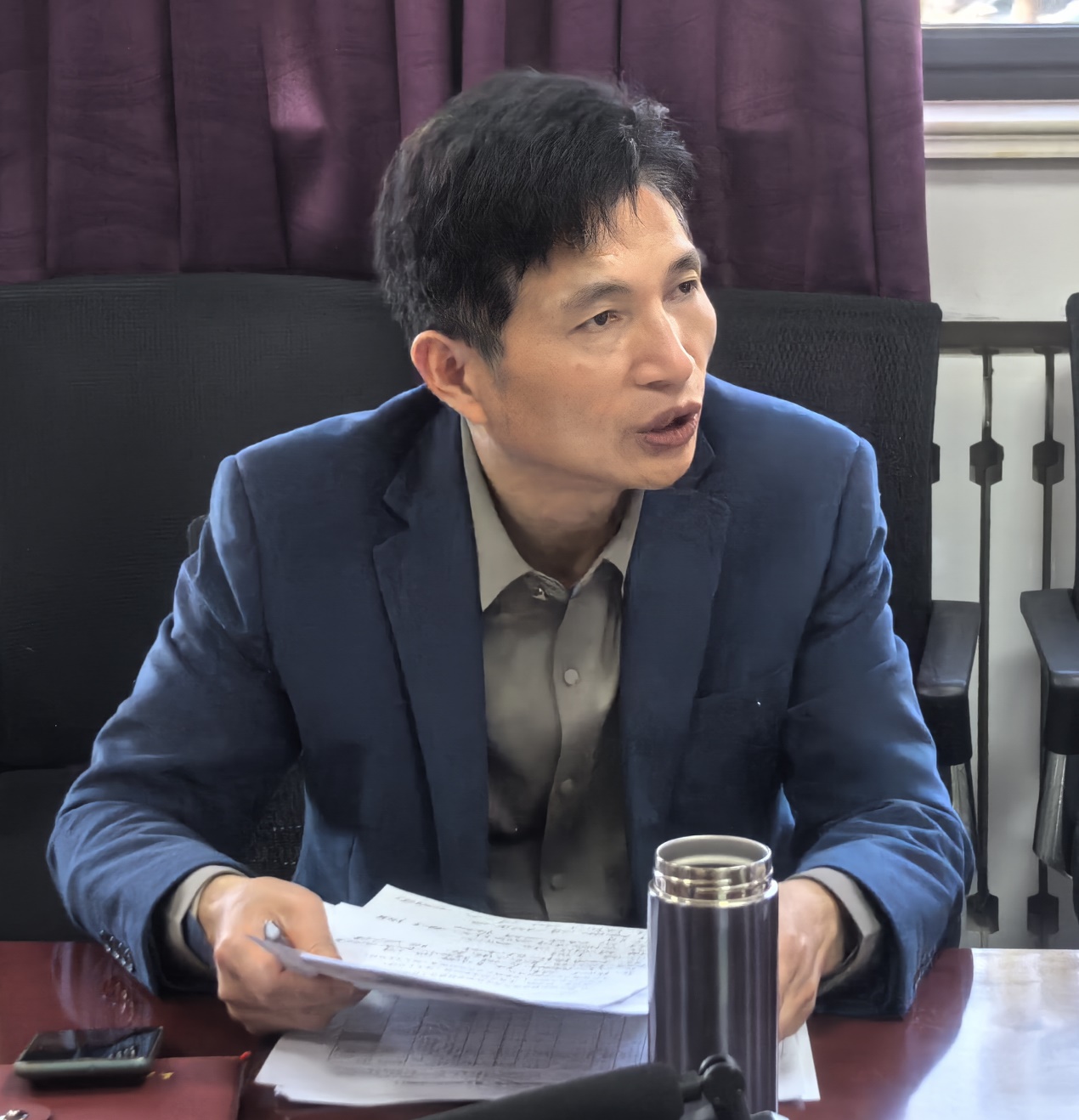 2025届毕业生魏京章、祝邦政、李育结合求职实际,从复习方法、面试技巧、心态调整等方面分享实战经验,通过案例分析为同学提供可操作建议。在互动环节,与会学生围绕“笔试备考策略”“面试能力提升”“职业选择困惑”等问题展开讨论。闫德忠、王家武逐一回应关切,建议毕业生合理定位目标,善用校院资源,通过模拟训练、导师咨询等方式补足短板,增强求职竞争力。
