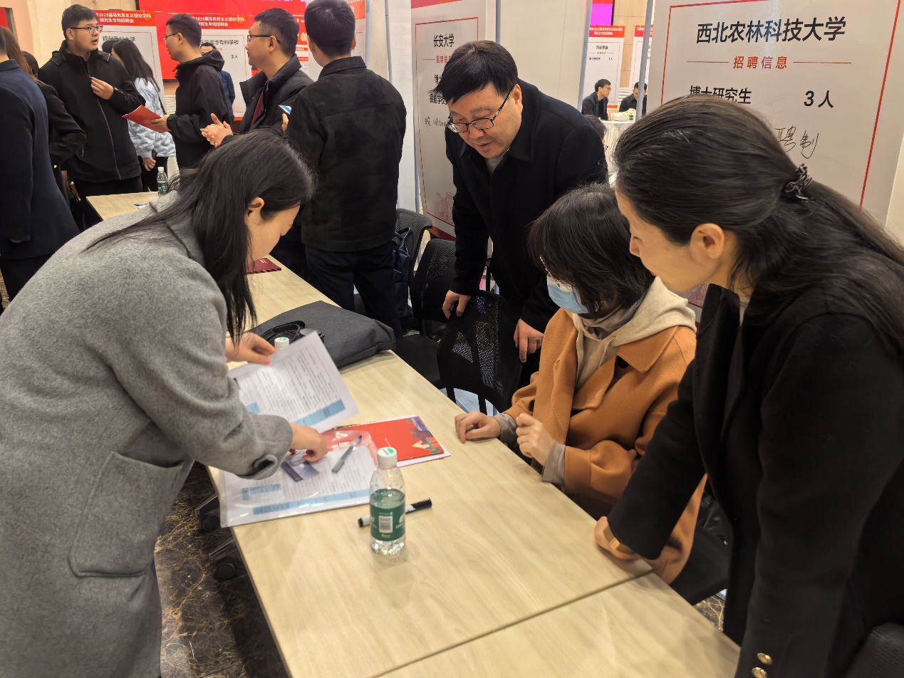 为深入学习贯彻党的二十届三中全会精神,全面落实党中央、国务院对高校毕业生就业创业工作的决策部署,进一步推动专业学科就业市场建设,搭建用人单位和毕业生双向选择平台,全力以赴促进2025届毕业生高质量充分就业,由陕西师范大学招生就业处主办,陕西师范大学新葡的京集团35222vip承办,西安交通大学、西北工业大学、新葡的京集团35222vip、西安电子科技大学、长安大学、西北大学等高校新葡的京集团35222vip共同联办,“新时代青年领航+”全国高校辅导员名师工作室协办的“全国高校2025届马克思主义理论学科研究生专场招聘会”于2025年3月8日在陕西师范大学长安校区举办,共有来自全国20个省的103家招聘单位参加了招聘会。新葡的京集团官网党委书记闫德忠带队,负责研究生就业的老师和学院人事管理人员参加了招聘会,学院也组织今年毕业的研究生积极参会。